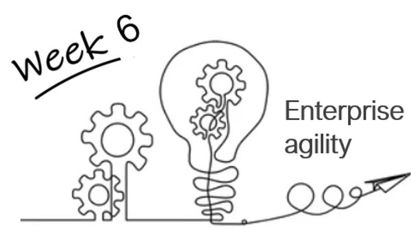 Week 6 focuses on scaling up agility, covering key frameworks such as LeSS, Nexus, SCRUM of SCRUMs, SAFe, and Discipline Agile. The curriculum highlights the importance for leaders to understand these principles and differentiate between them to make the best choices for solving specific business challenges. Total of 25 min video content covering details of each methodology and potential application.